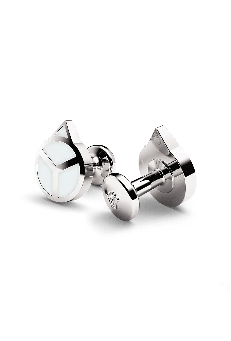 Gemelos Rolex fabricados en oro blanco de 18 quilates que evocan la aguja de las horas de los relojes Profesionales Rolex, equipados con una visualización Chromalight.