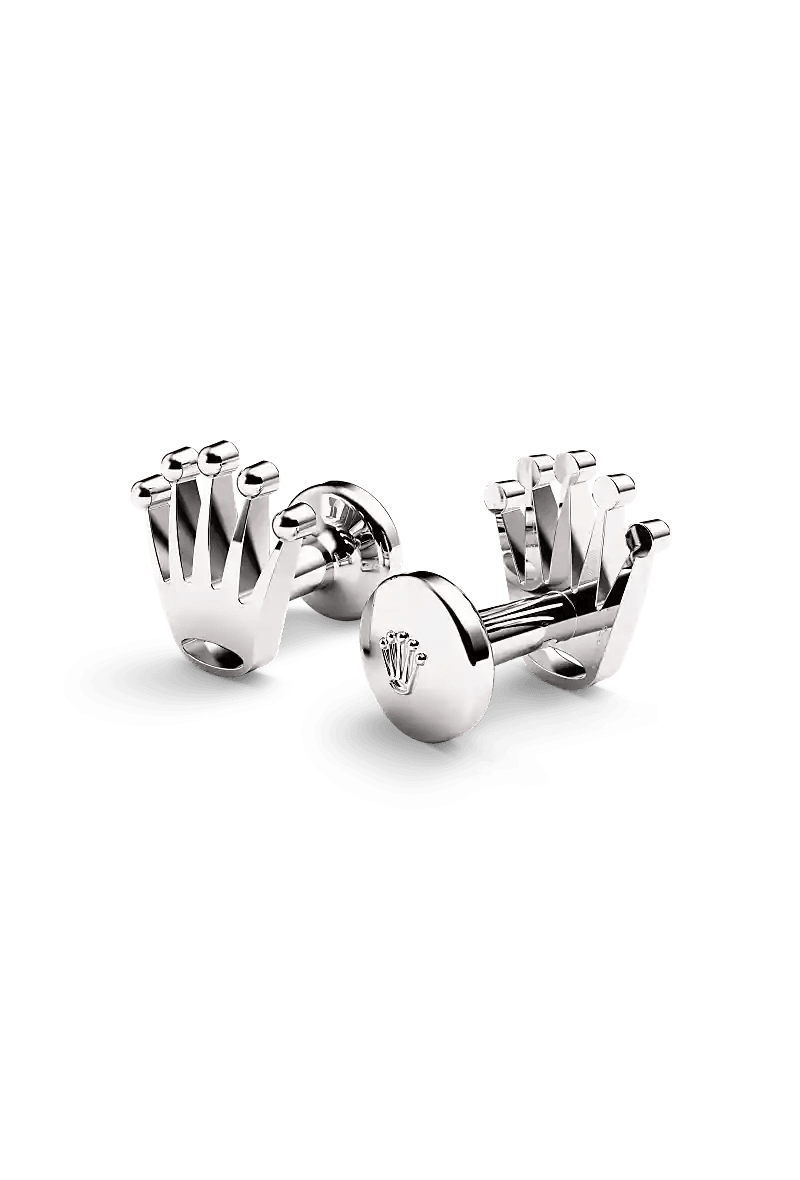 Gemelos Rolex fabricados en oro blanco de 18 quilates con forma de la emblemática corona Rolex.
